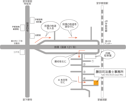 | 特記事項 | 当事務所の所在地である宮の内は、宇都宮市 雀宮地区にあります。 自宅の一室を事務所としております。 住宅地の中にある一軒家のため、わかりづらいという難点がありますが、 アットホームな雰囲気でのご相談が可能となっております。 セキュリティや機密保持等は万全の体制で運用しておりますので、ご安心ください。 |
